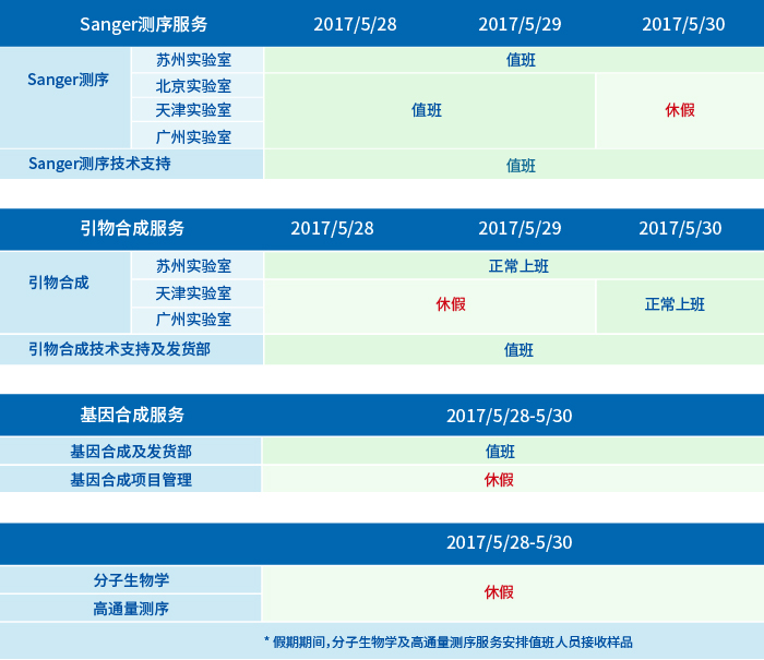放假期间如有特殊需求,请直接联系当地销售。 非常感谢大家一直以来对金唯智的信赖和支持,金唯智将一直为全球客户提供更高品质的基因组服务,让生命科学研究更为高速度、高质量,以促进生命科学和生物技术发展!